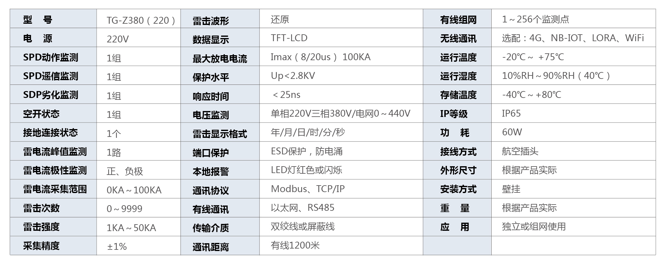 TG-Z380(220)系列智能防雷箱適用于電力能源、軌道交通、石油石化、危化礦業(yè)、通信金融、民航高速、國(guó)防軍工、文物景點(diǎn)、政企教育、環(huán)保水利等各行業(yè)重要場(chǎng)所配電系統(tǒng)的防護(hù),同時(shí)實(shí)現(xiàn)防護(hù)及防護(hù)裝置的全生命周期狀態(tài)監(jiān)測(cè),通過防護(hù)及對(duì)裝置本身的實(shí)時(shí)監(jiān)測(cè)、數(shù)據(jù)記錄與分析,實(shí)現(xiàn)對(duì)防護(hù)裝置出現(xiàn)劣化或失效時(shí)及時(shí)響應(yīng),并做出應(yīng)急解決方案和后期的防護(hù)決策。