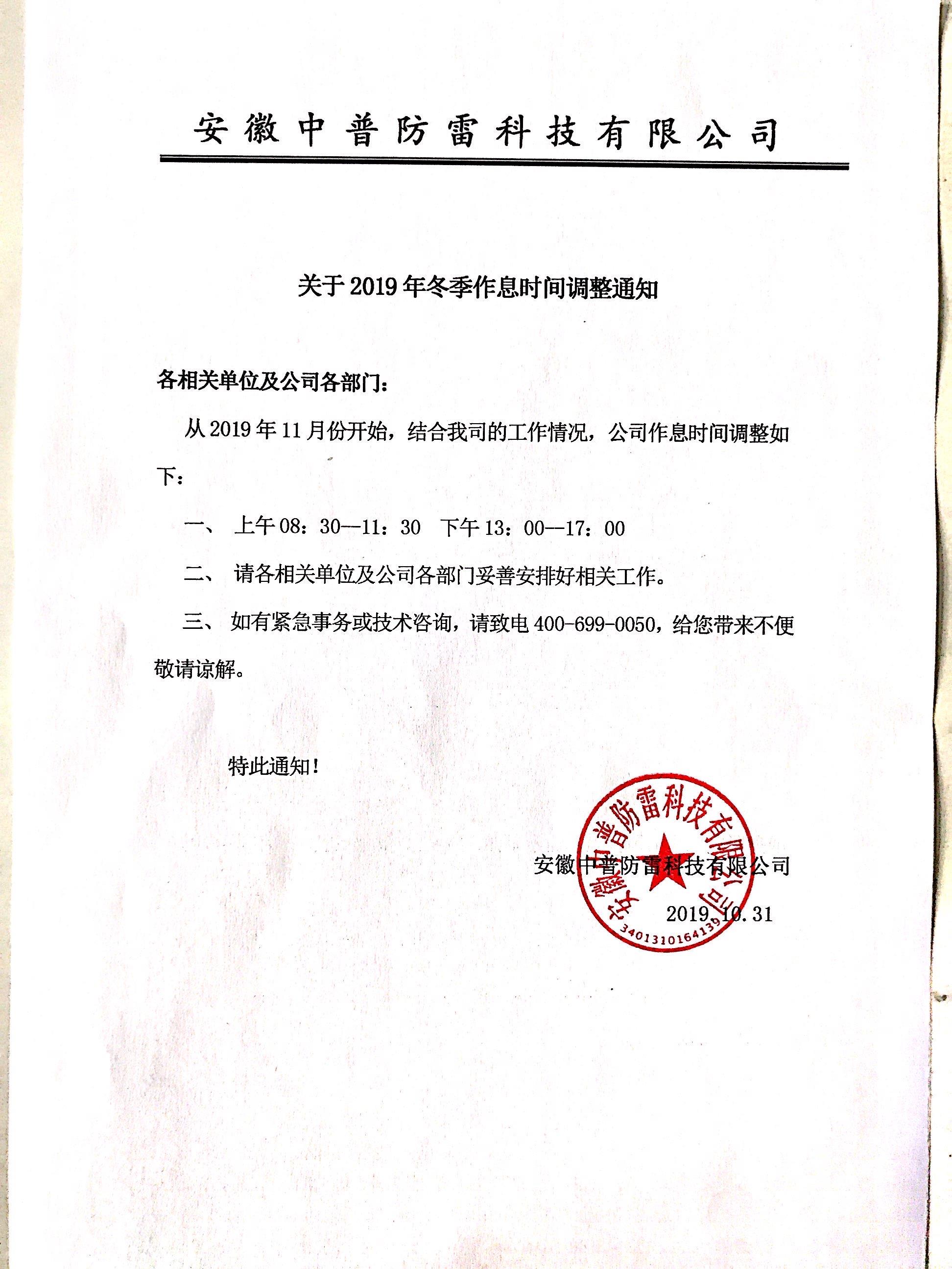 關(guān)于2019年冬季作息時間調(diào)整通知