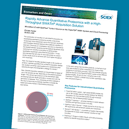 | 高通量微升流速技術(shù)、SWATH 采集技術(shù)和用于快速處理大數(shù)據(jù)的基于SCIEX云計算的 OneOMICS? 軟件。專為生物標(biāo)記物的發(fā)現(xiàn)與研究提供的全流程解決方案。 | 基于微升流速色譜技術(shù)和可變窗口的SWATH?采集技術(shù)平臺,可以每天快速定量分析超過幾百個樣品。 | SWATH?采集技術(shù),可以用于大型組織生物樣本庫的大規(guī)模數(shù)字化。 |